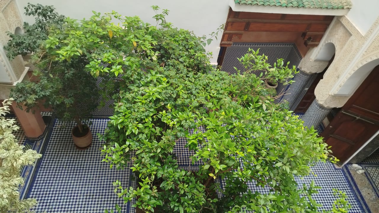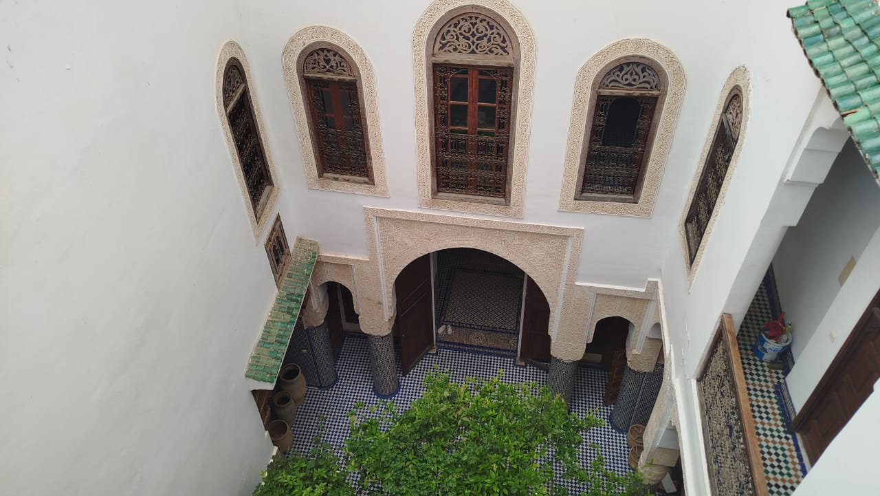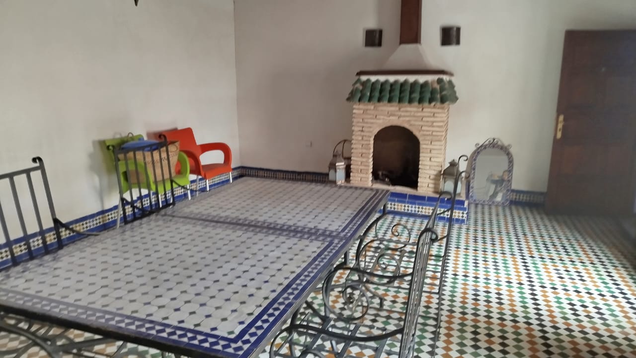 الطابق الأرضي: فناء، صالون، برطال ، نافورة