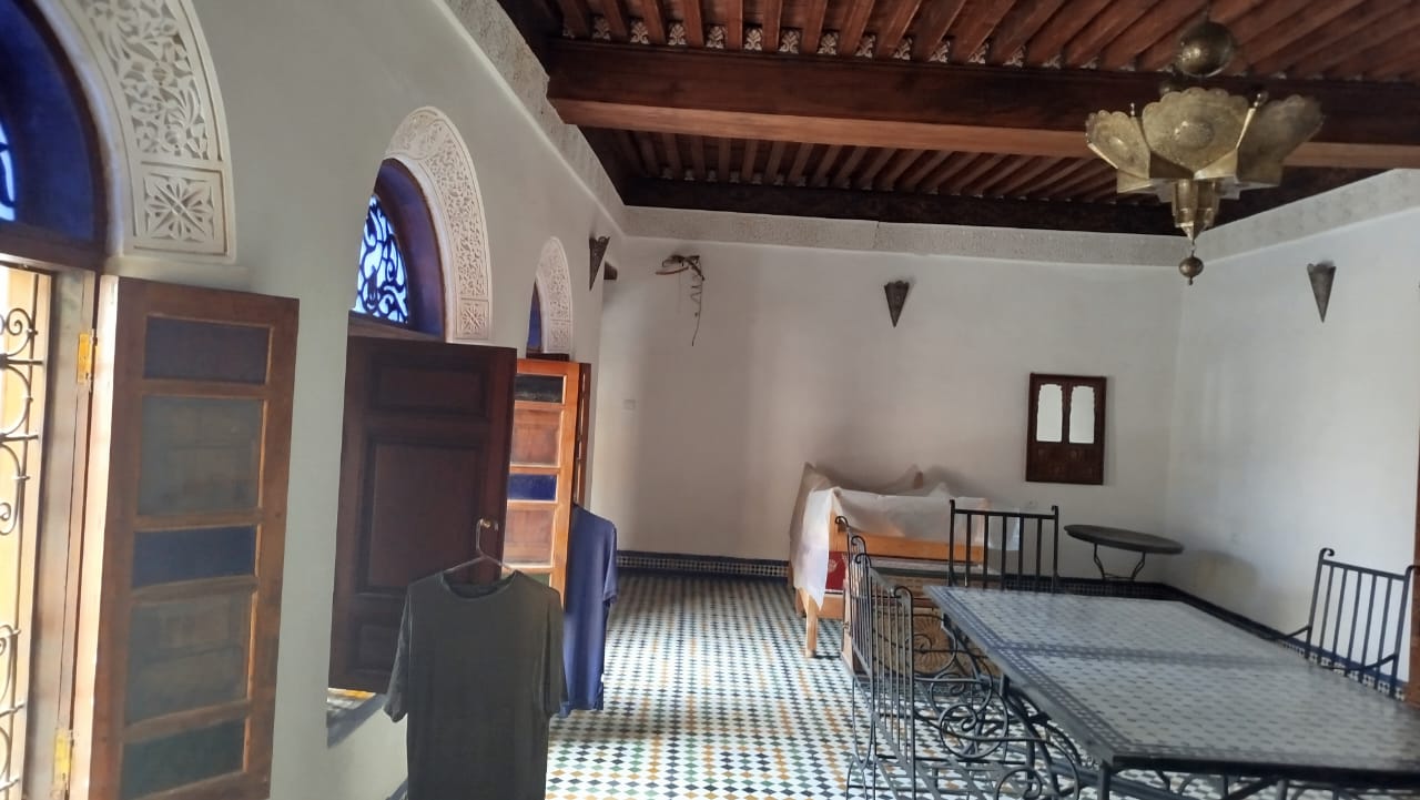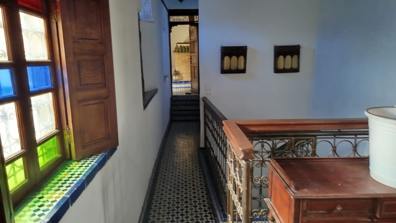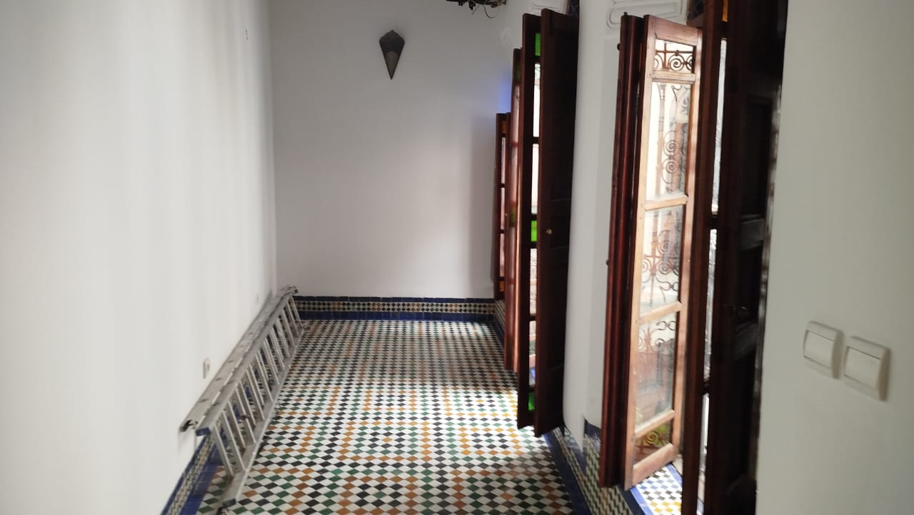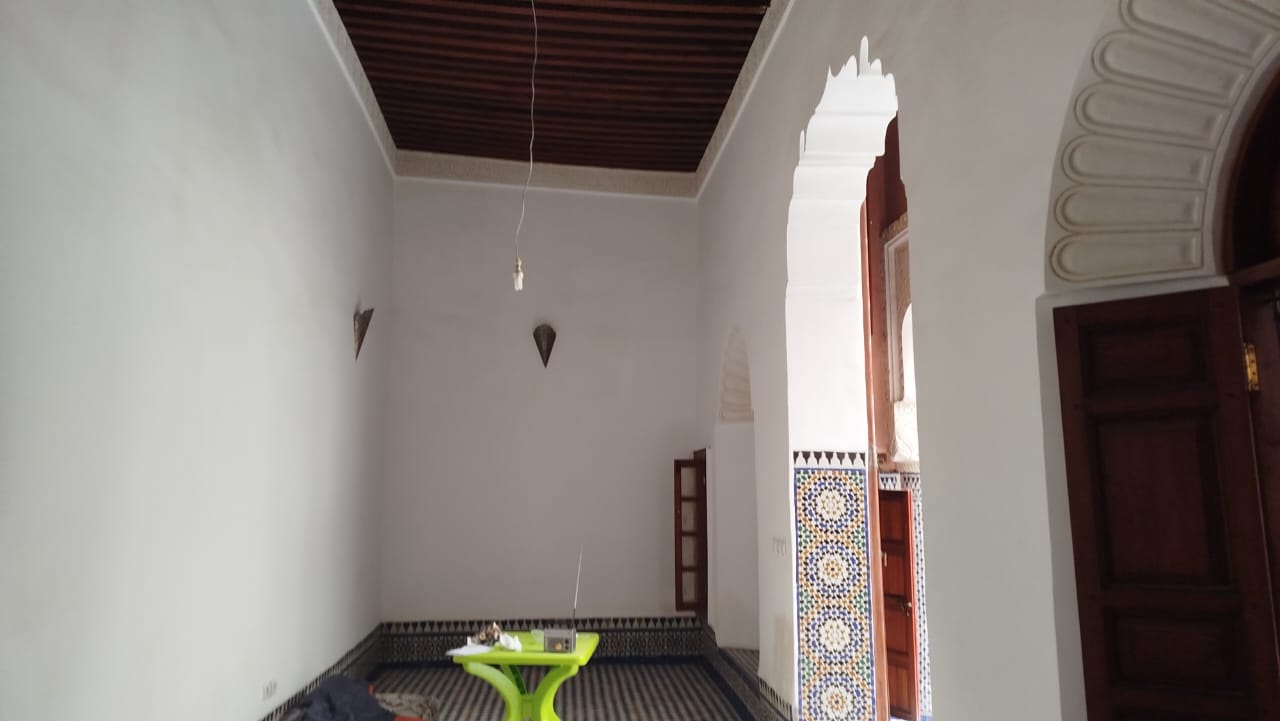 الطابق الأرضي: فناء، صالون، برطال ، نافورة