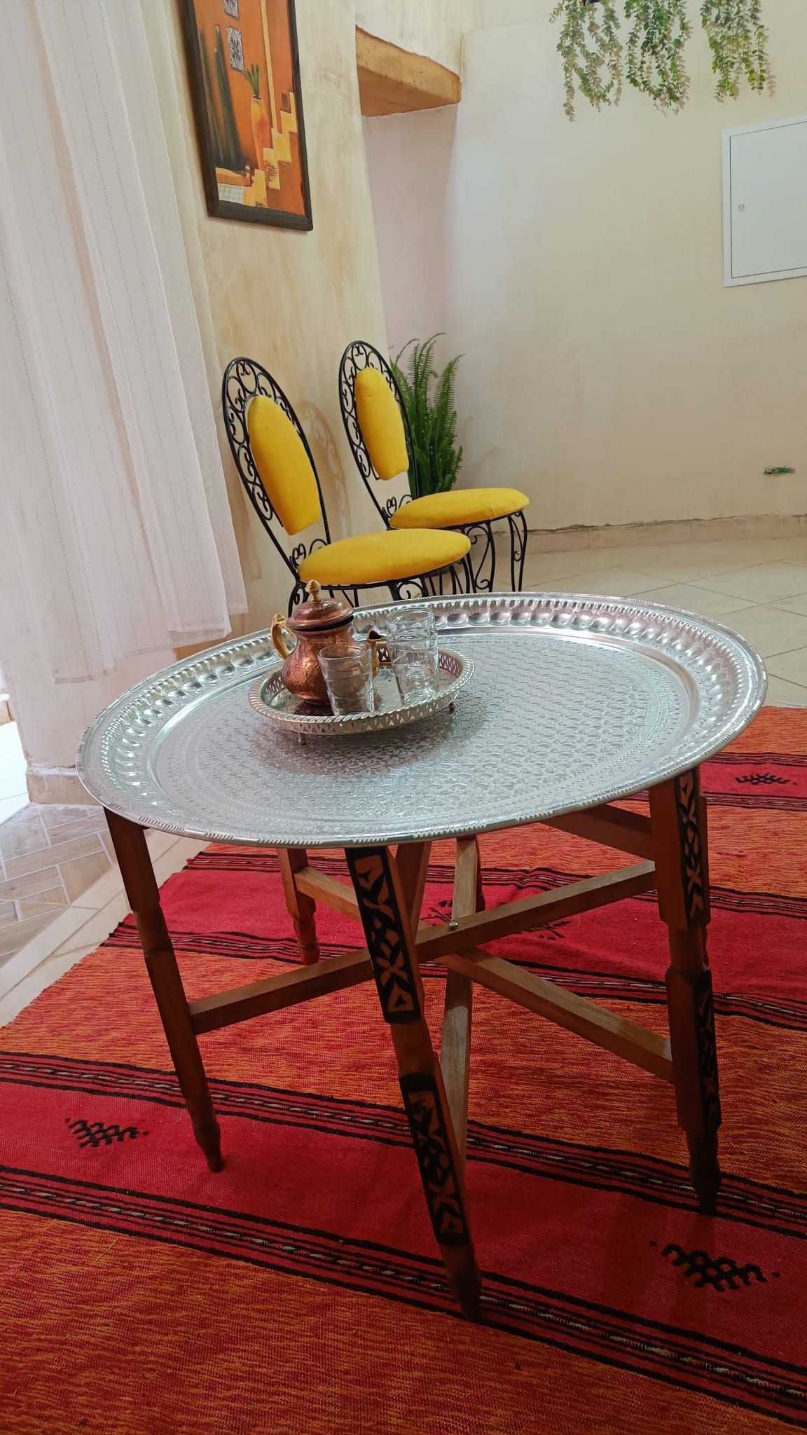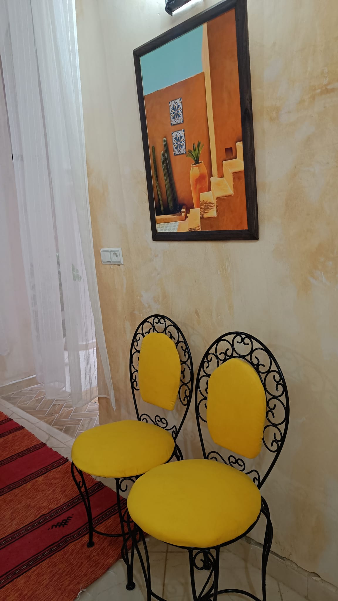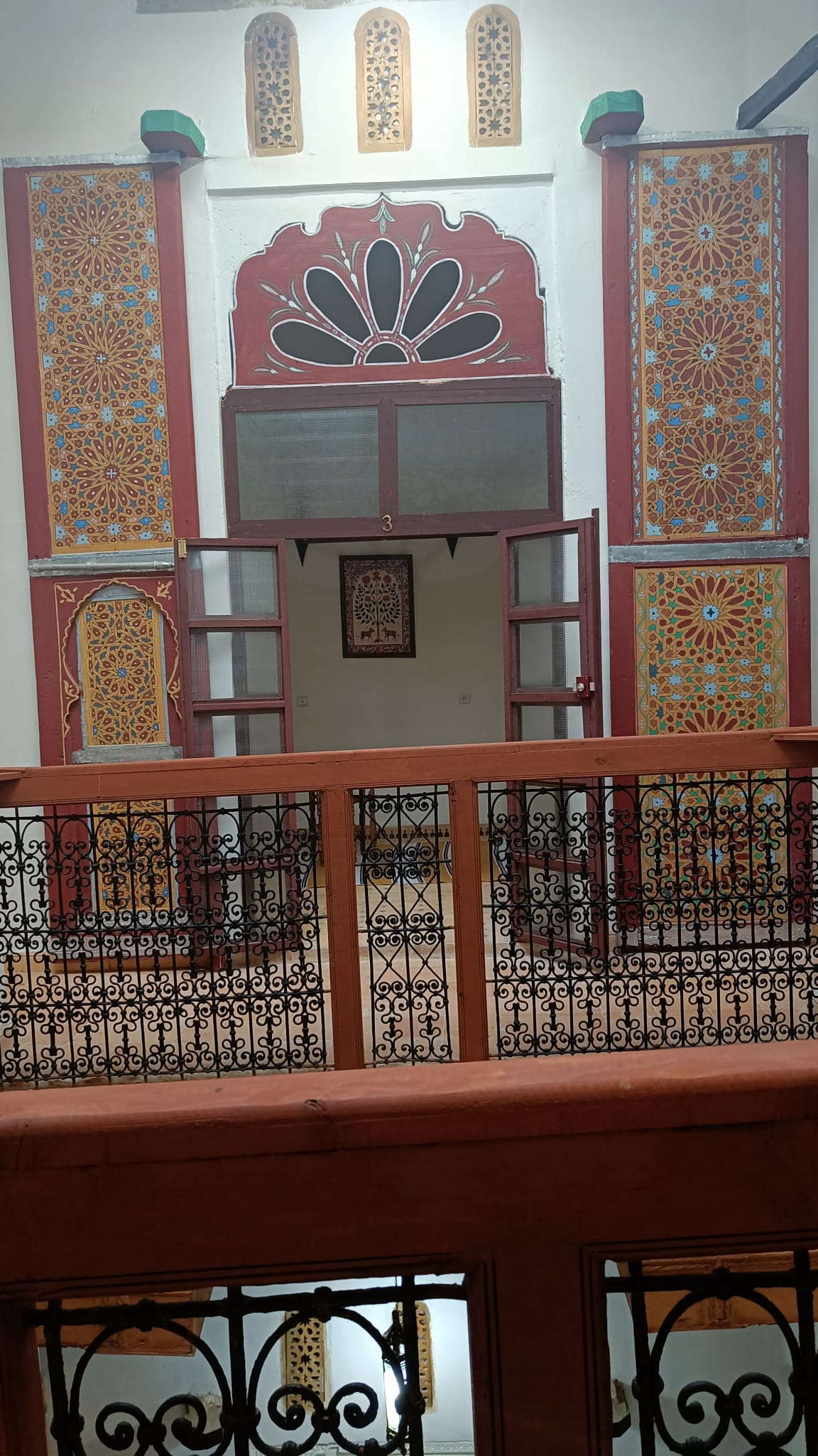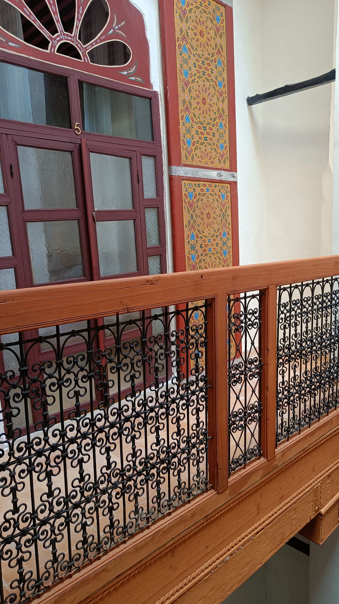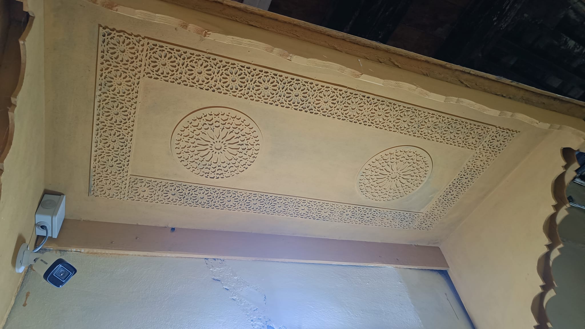 الطابق الأرضي: فناء، صالون، مطبخ، حمام