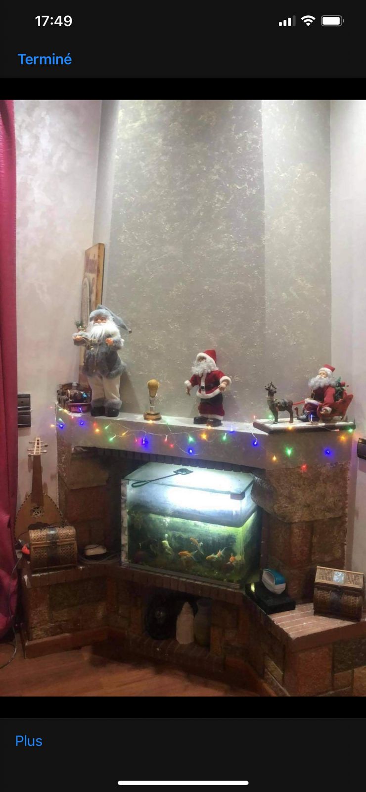 Étage en bas : ce n’est pas vraiment une cave car ouverte sur une immense cour avec faux gazon, énorme cuisine avec une chambre
