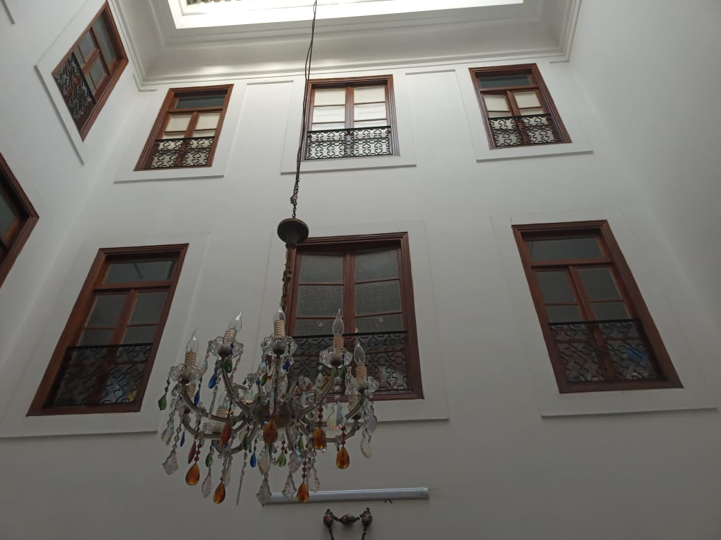الطابق الأرضي: ثلاث غرف ، صالوناين ، فناء
